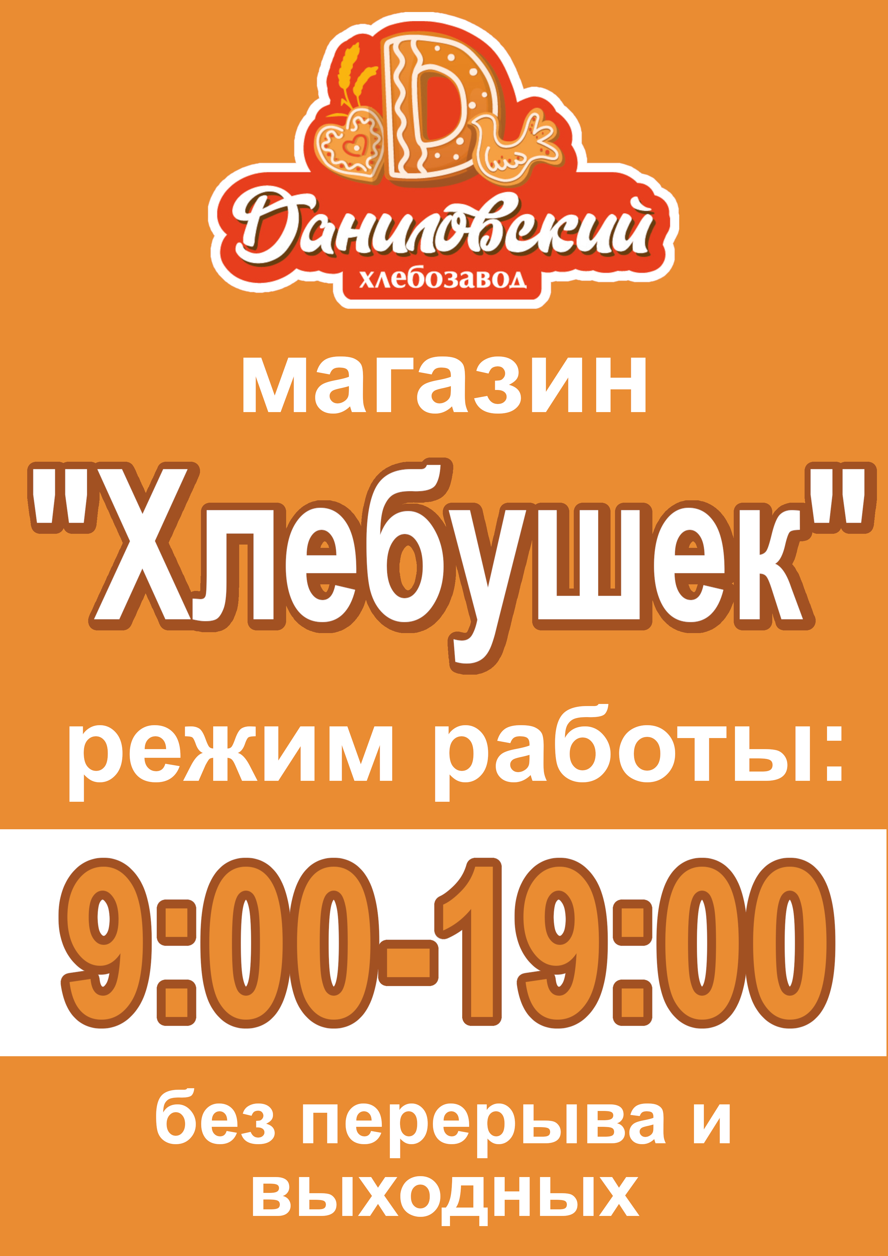 Магазин «Хлебушек» расположен по адресу: г. Данилов, ул. Дорожная, 16. Будем ждать вас каждый день с 9:00 до 19:00.